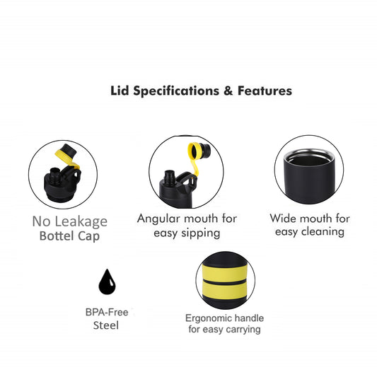 Probott Alpha 620ml Thermoses Vacuum Insulated Flask Sipper Bottle, Stainless Steel Water Bottles, Yellow