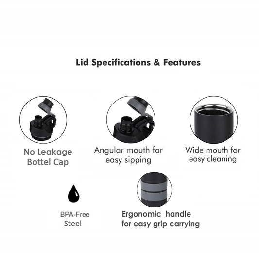 Probott Alpha 620ml Thermoses Vacuum Insulated Flask Sipper Bottle, Stainless Steel Water Bottles, Black