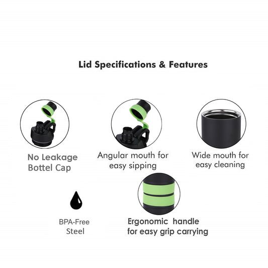 Probott Alpha 620ml Thermoses Vacuum Insulated Flask Sipper Bottle, Stainless Steel Water Bottles, Green