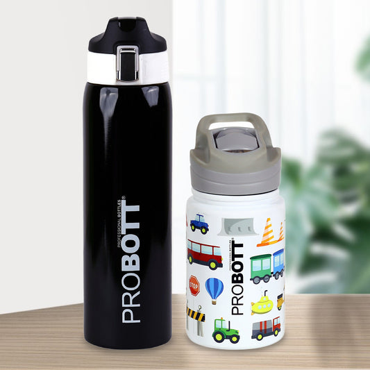 Probott Icon 1000ml Stainless Steel Hot & Cold Water Bottle with Probott Space 360ml Kids Vacuum Flask with 3D Print (Black & White, Combo Pack)10% off MRP (Incl. of all taxes) Regular price Rs. 2,023.20Regular priceUnit price / perRs. 2,248.00Sale price Rs. 2,023.20SAVE ₹ 224.8 Sale