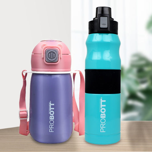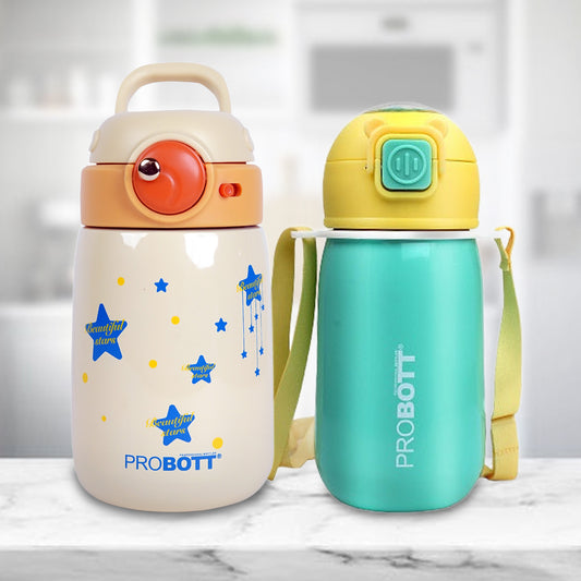 Probott Cool Kid 360ml Sipper Bottle with Cutie 320ml Push-Button Sipper Bottle | Double Wall Hot & Cold Flask Combo10% off MRP (Incl. of all taxes) Regular price Rs. 1,771.20Regular priceUnit price / perRs. 1,968.00Sale price Rs. 1,771.20SAVE ₹ 196.8 Sale