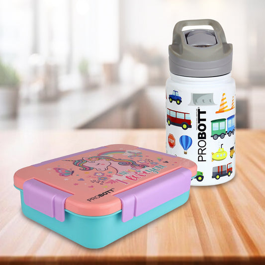 Probott Space 360ml Kids Hot & Cold Bottle with Lunch On 710ml 3-Grid Tiffin Box (combo for kids)10% off MRP (Incl. of all taxes) Regular price Rs. 1,843.20Regular priceUnit price / perRs. 2,048.00Sale price Rs. 1,843.20SAVE ₹ 204.8 Sale