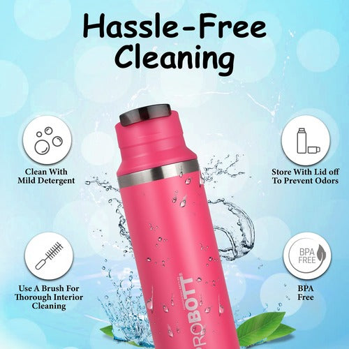 PROBOTT LITE Ocean 950ml Single Wall Stainless Steel Water Bottle Without Vacuum Tech, Pink