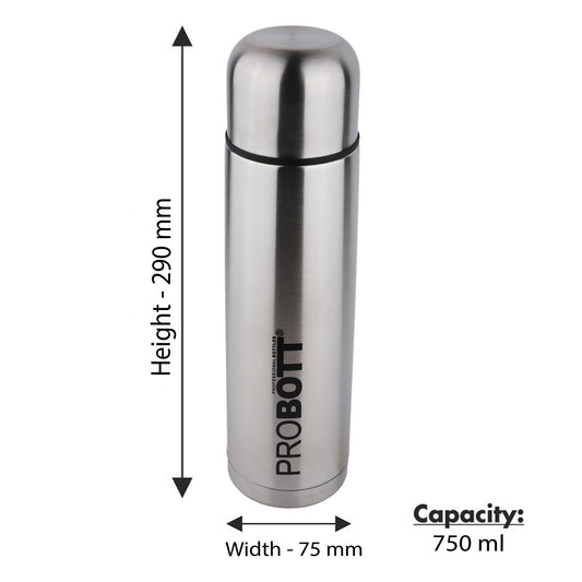 Probott Old Edition Water Bottle, Stainless Steel Water Bottles, Vacuum Insulated Flask Bottles, 750 ml, Silver | Hot and Cold | Easy to Carry | Rust & Leak Proof | Tea | Coffee | Office| Gym | Travel