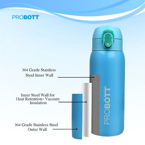 Probott Cutie 320ml Stainless Steel Hot & Cold Sipper Water Bottle for Kids, Blue| Double Walled Vacuum Flask |Push Button With Locking System