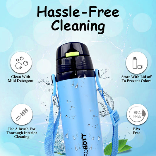 Probott School Champ 370ml Sipper Bottle for Kid with Straw & Strap to Carry, Blue | Stainless Steel Hot & Cold Water Bottle for Kids