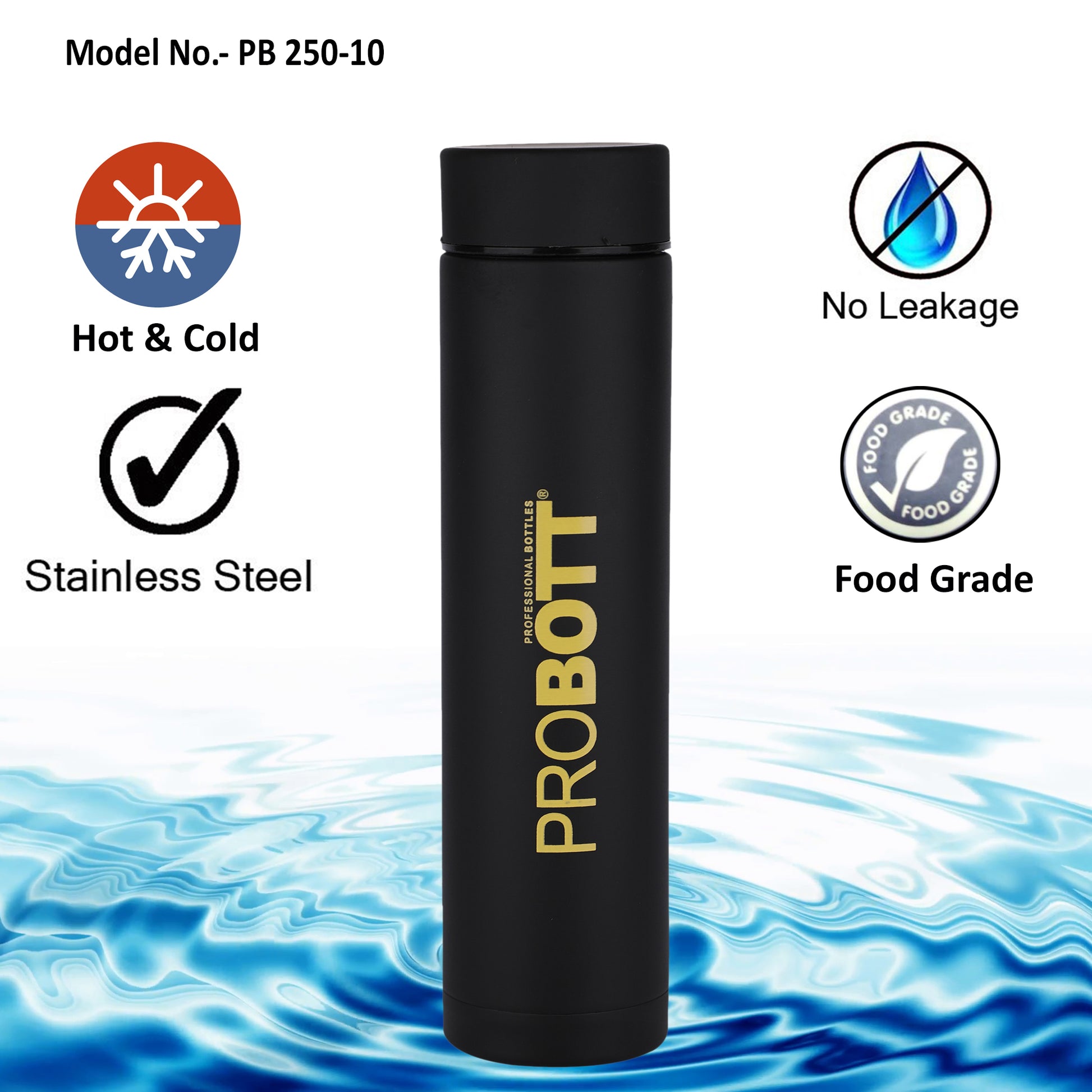 PROBOTT Compact 250ml Thermosteel Vacuum Flask, Stainless Steel Water Bottle - Yellow