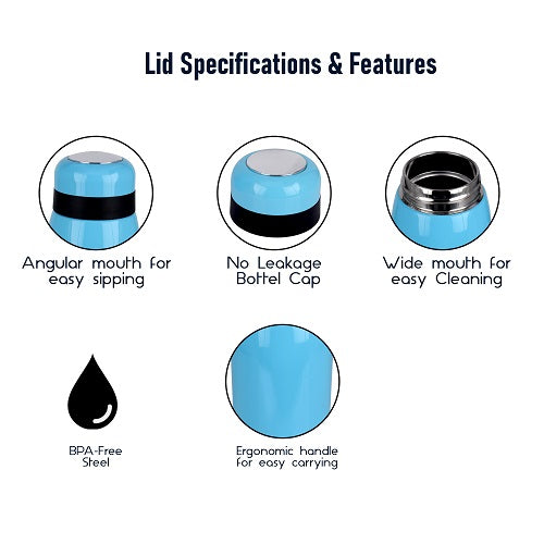 Probott Drops Water Bottle, Stainless Steel Water Bottles, Vacuum Insulated Flask Bottles, 500 ml, Light Blue