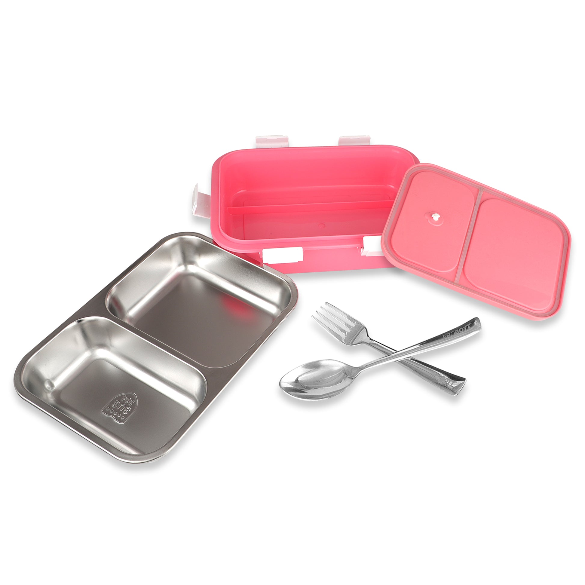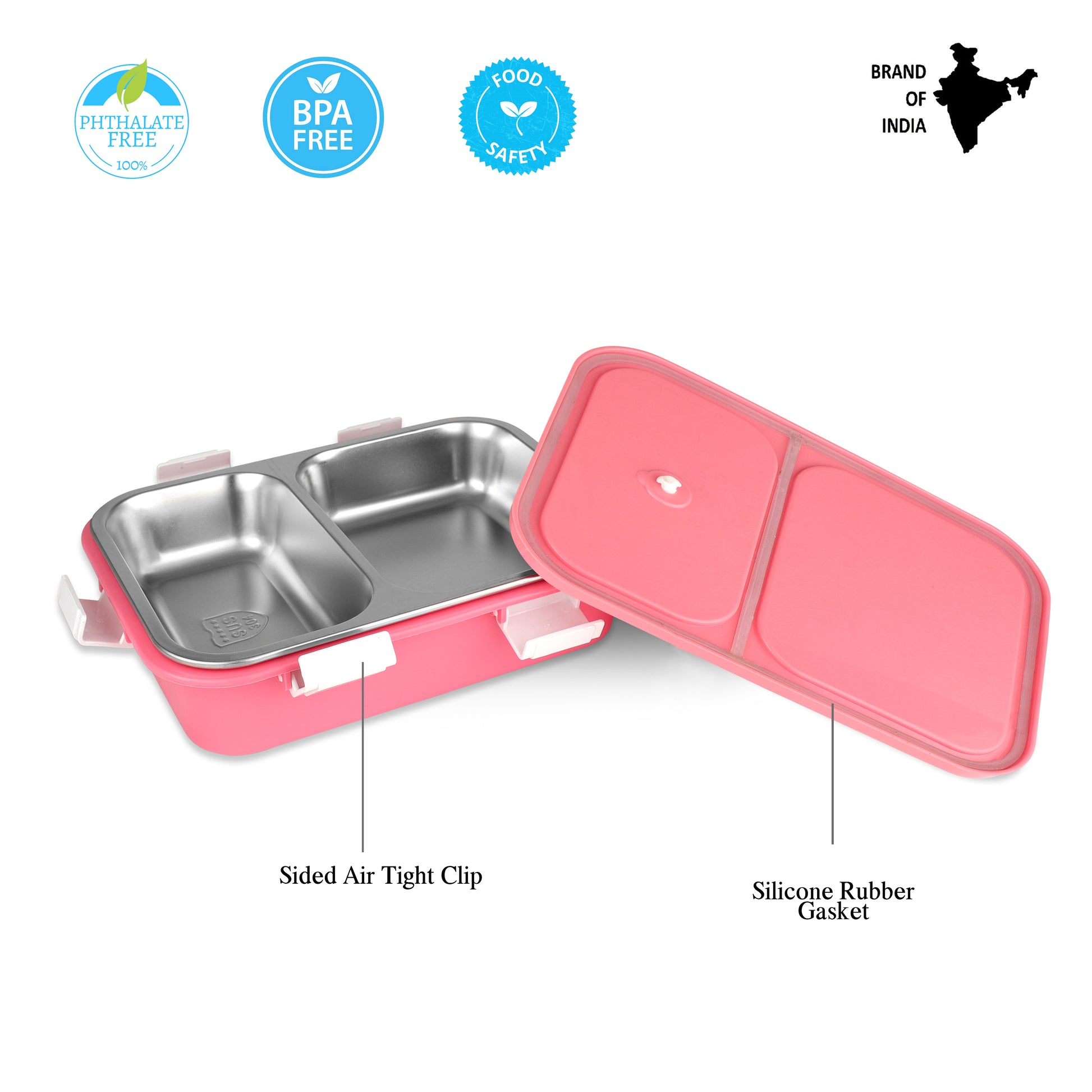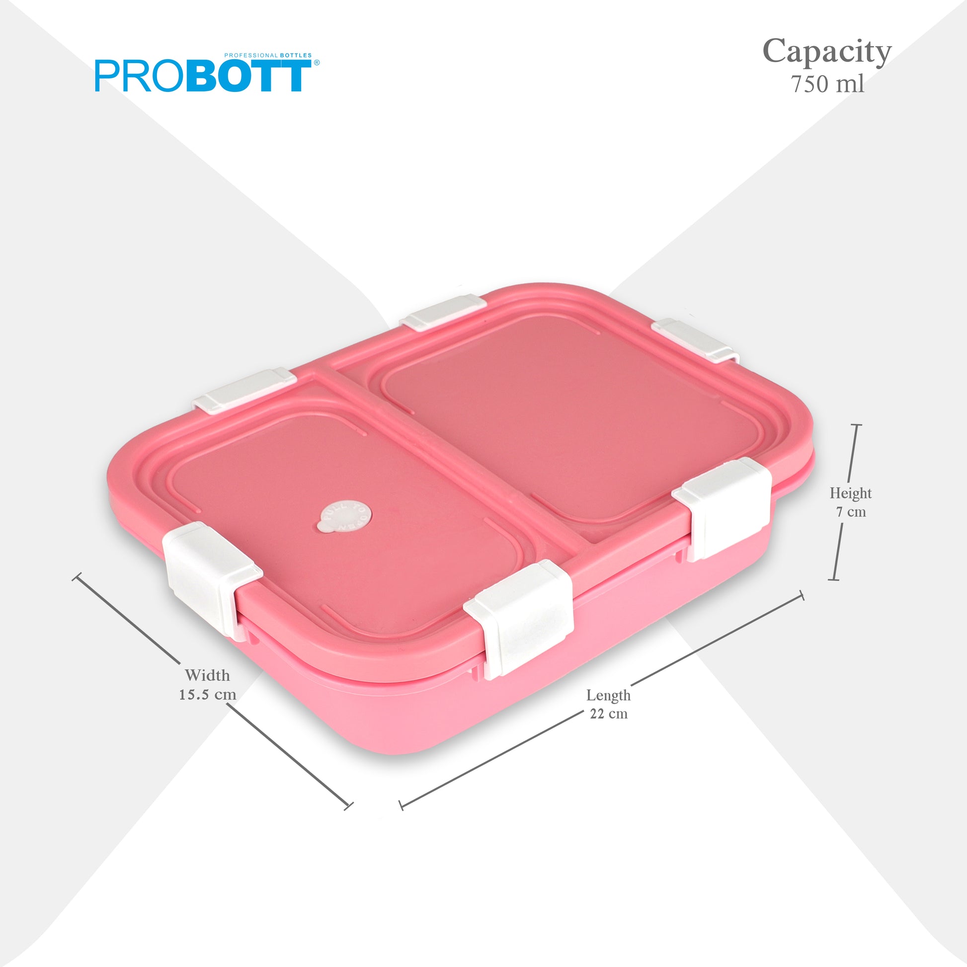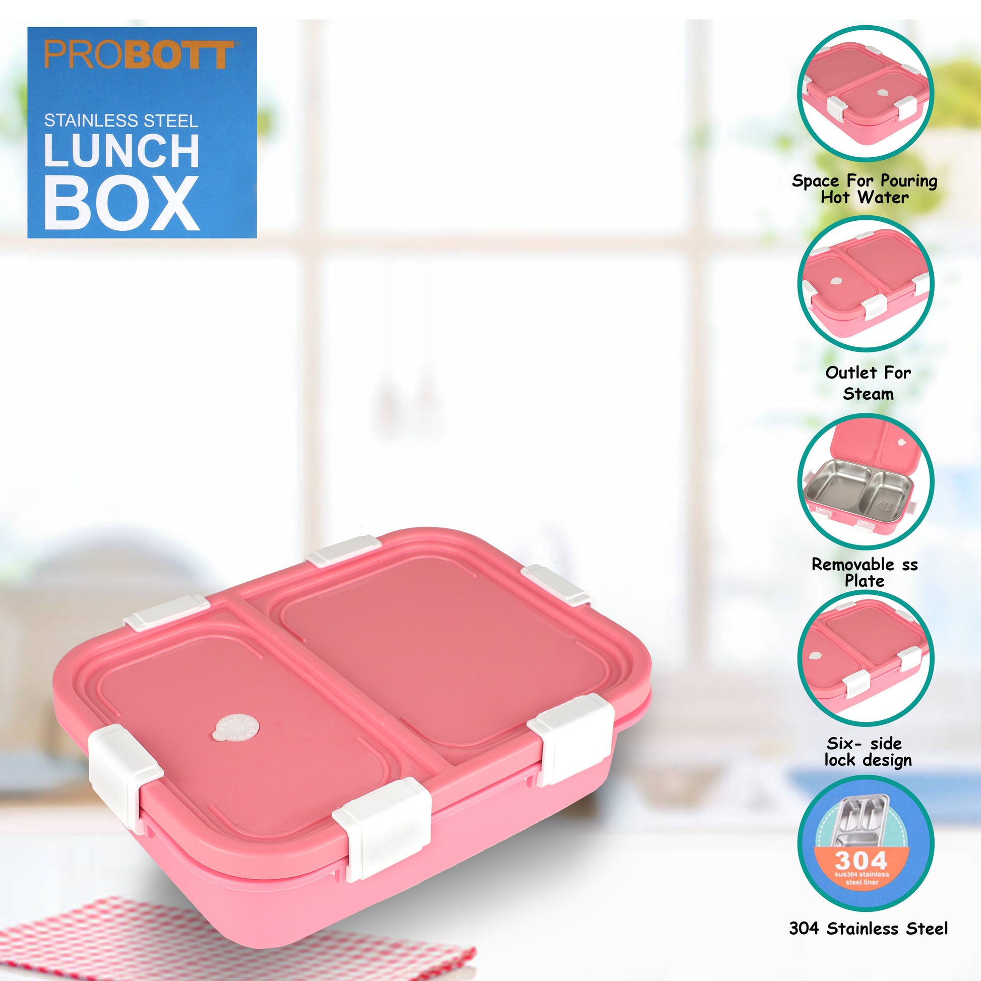 PROBOTT Snaplock 750 ml Stainless Steel Lunch Box, 2 Grid BPA Free Tiffin Box, Perfect for School, Office, Travel, Picnic | Pink