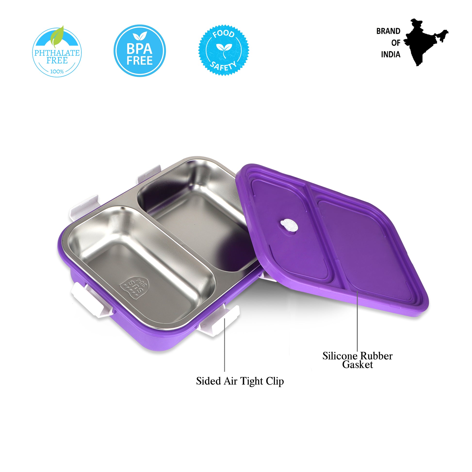 PROBOTT Snaplock 750 ml Stainless Steel Lunch Box, 2 Grid BPA Free Tiffin Box, Perfect for School, Office, Travel, Picnic | Purple