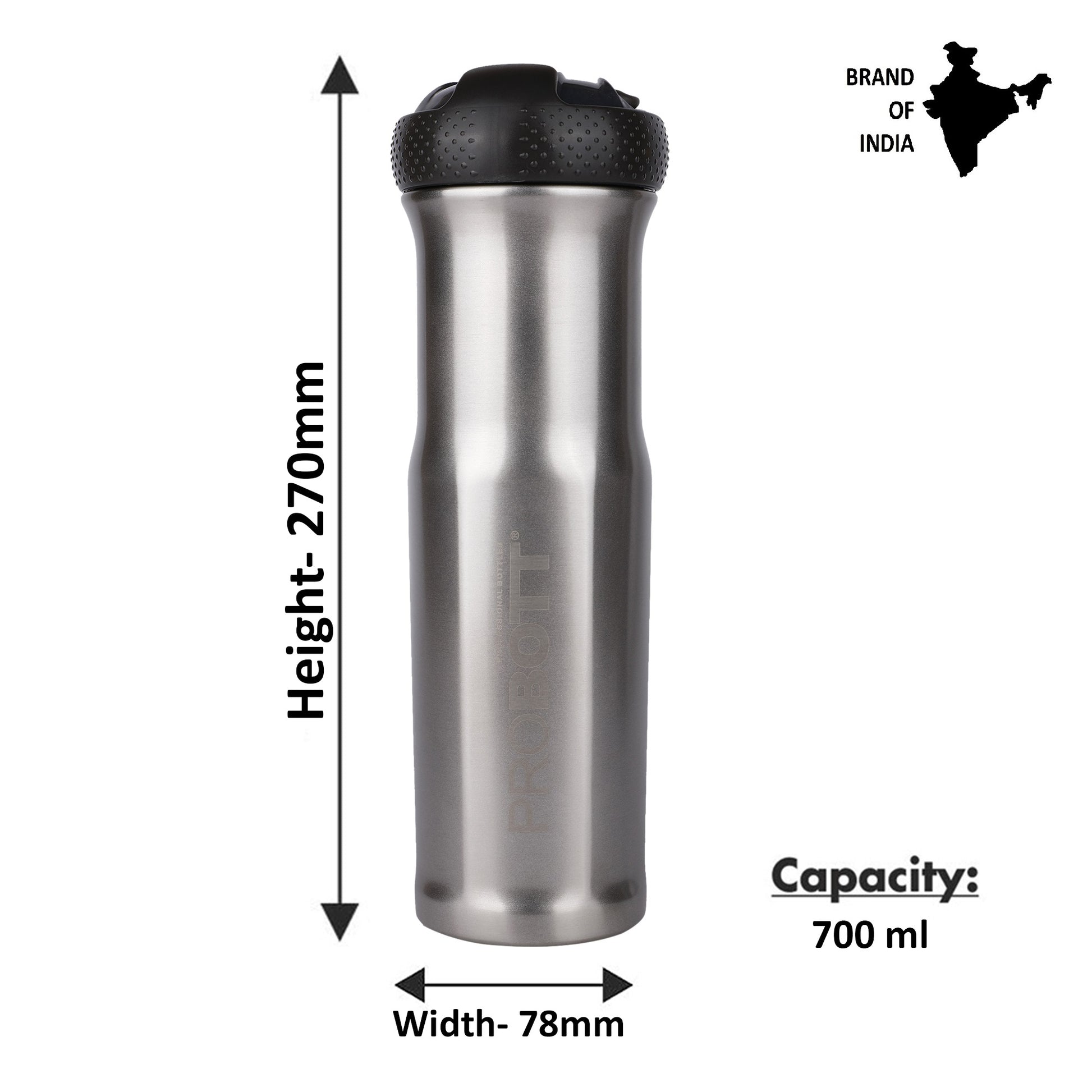 Probott Status 700ml Stainless Steel Water Bottle, Vacuum Insulated Flask Bottles, Brown | Hot and Cold | Easy to Carry | Leak Proof