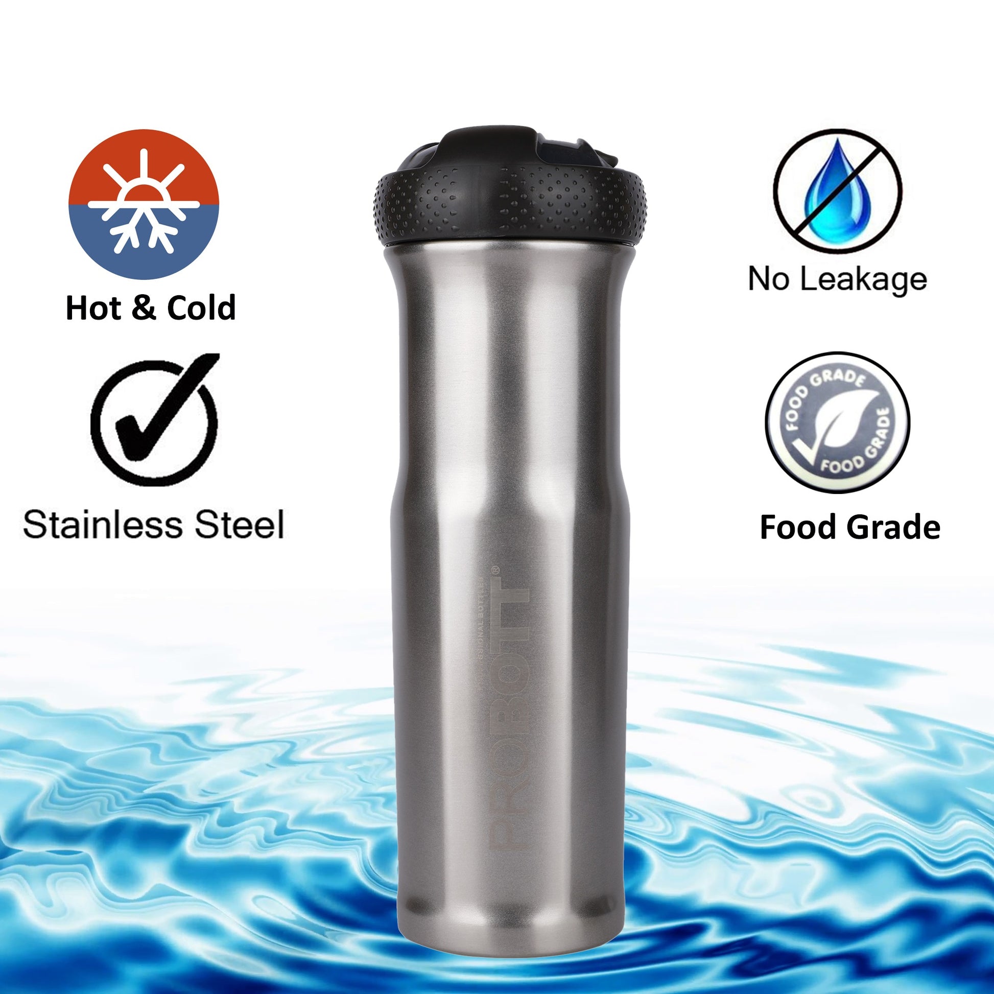 The Probott Status keeps drinks hot or cold for hours. Leak-proof, sturdy, and easy to carry. The brown color looks sophisticated and stylish