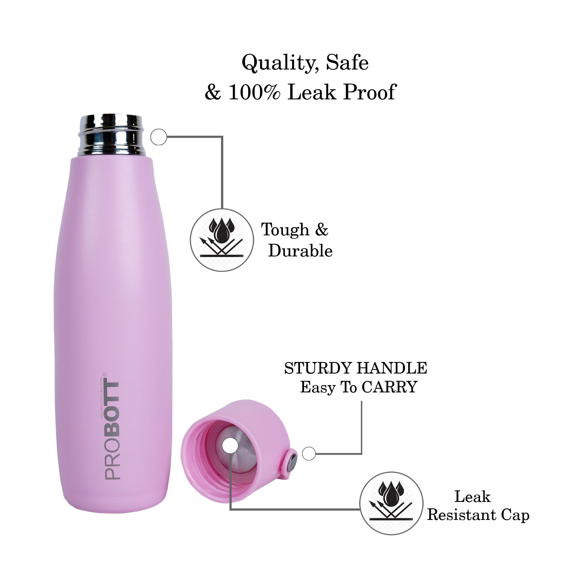 The Probott Trendy keeps drinks hot or cold for hours. Leak-proof, lightweight, and easy to carry. The pink color looks adorable and fun