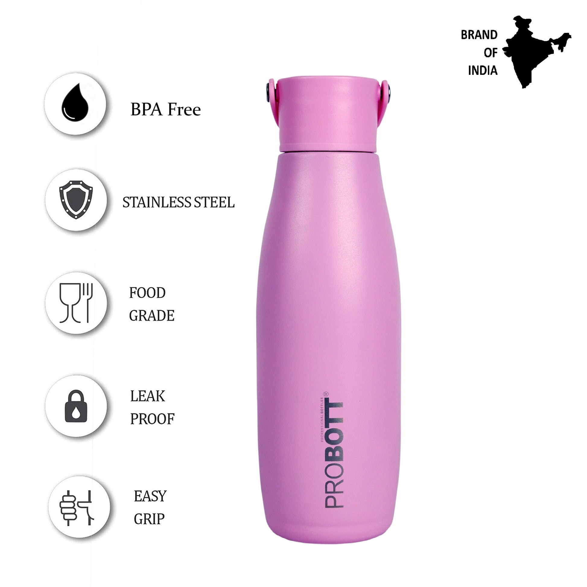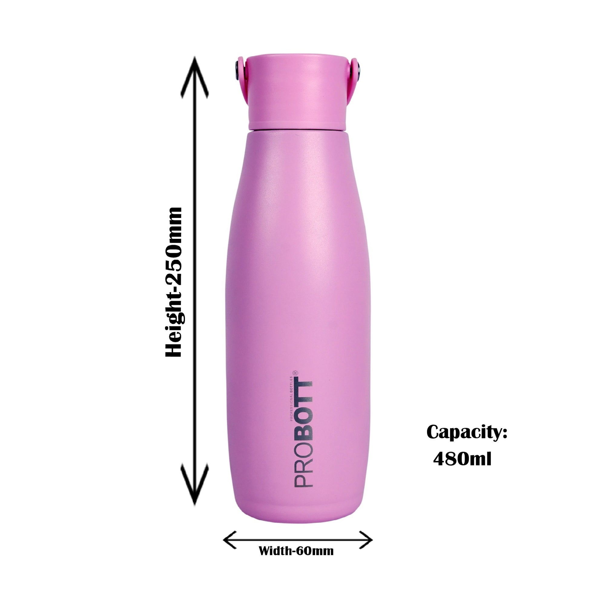 Probott Trendy 480ml Stainless Steel Water Bottles, Vacuum Insulated Flask Bottles, Pink | Hot and Cold | Easy to Carry | Leak Proof