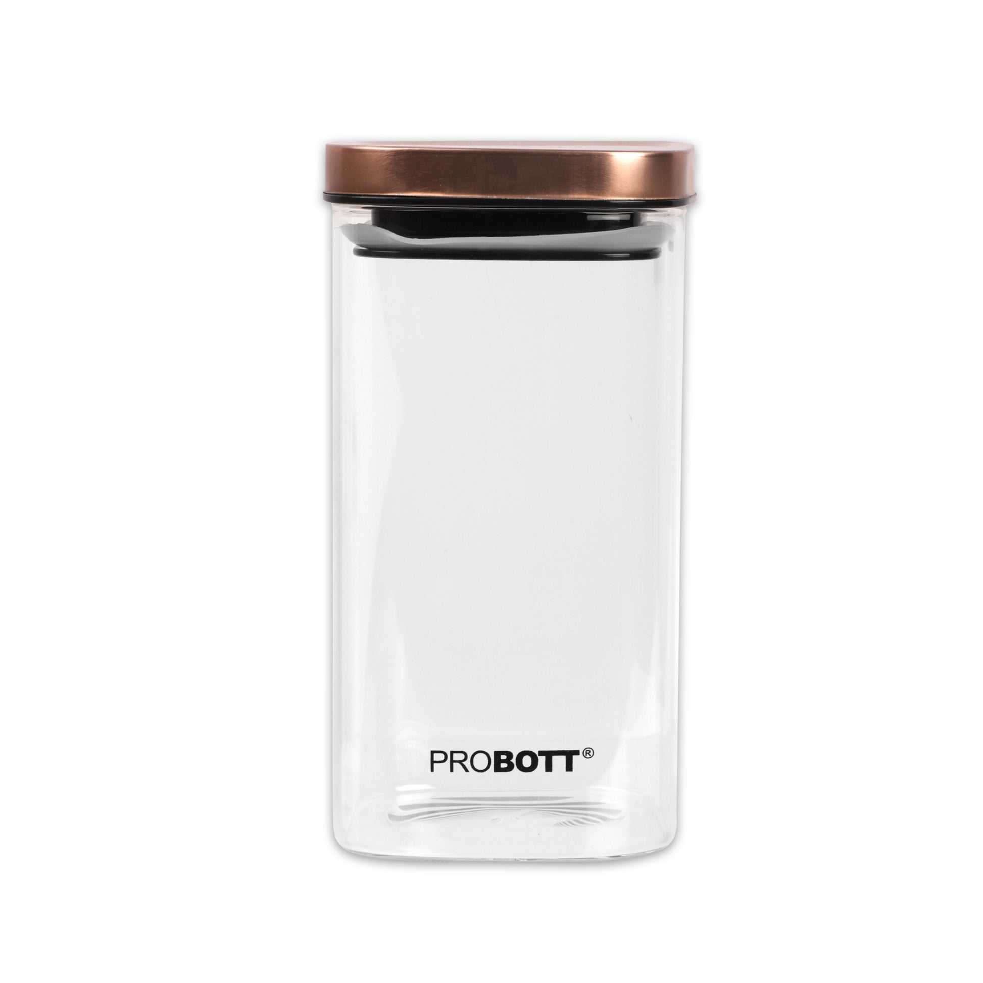 PROBOTT Vetroware 1400ml Glass Square Jar Container with Metal Golden Color Air Tight Cap