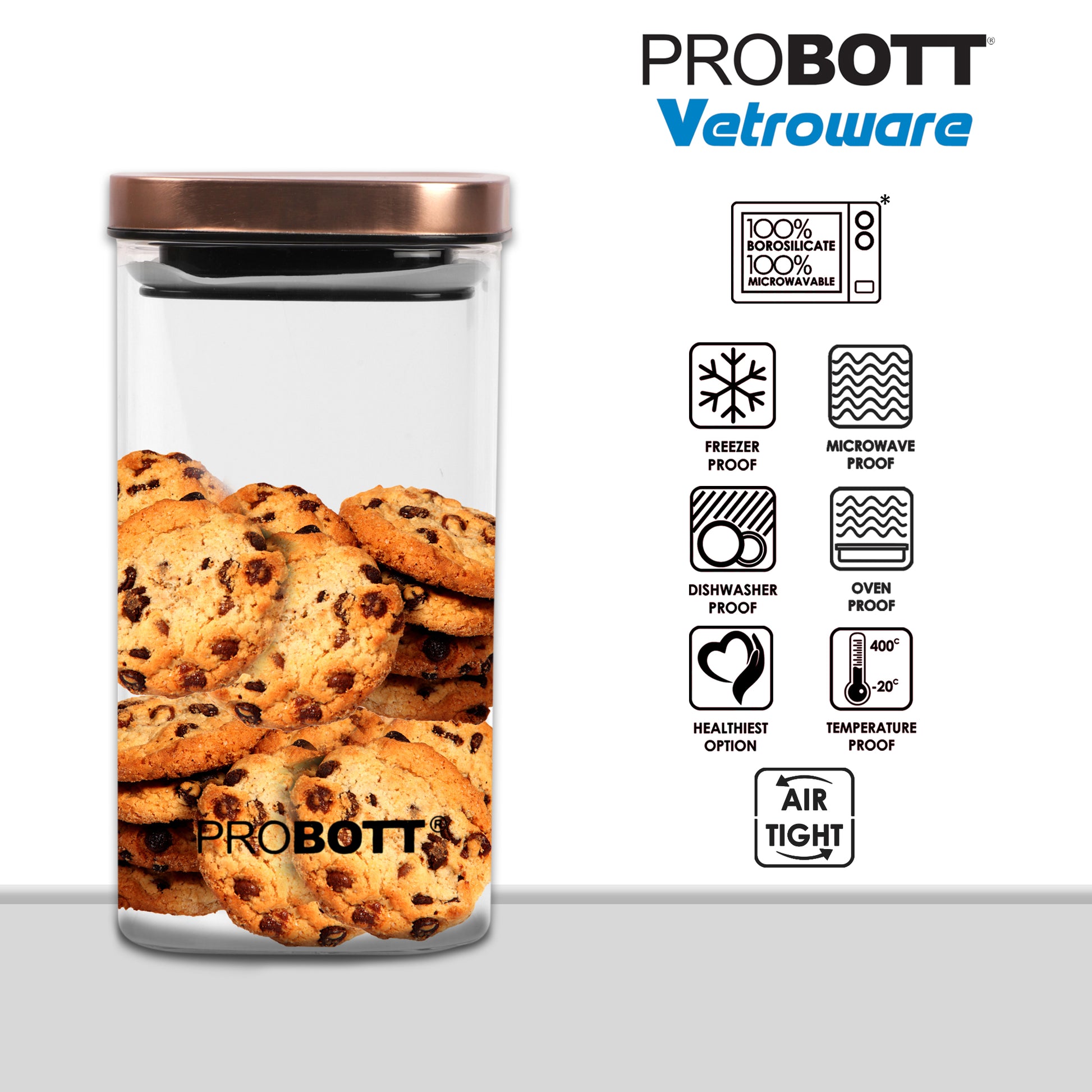 The Probott Vetroware glass jar is perfect for storing dry ingredients. The airtight golden cap keeps everything fresh, and the design looks beautiful in the kitchen