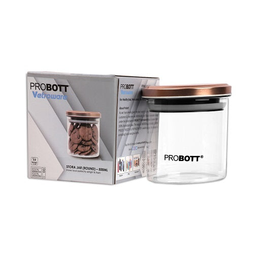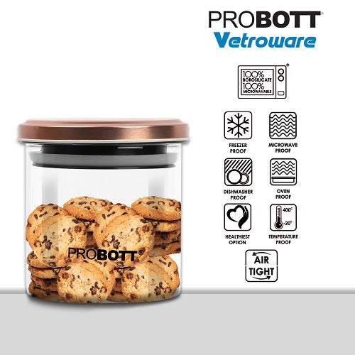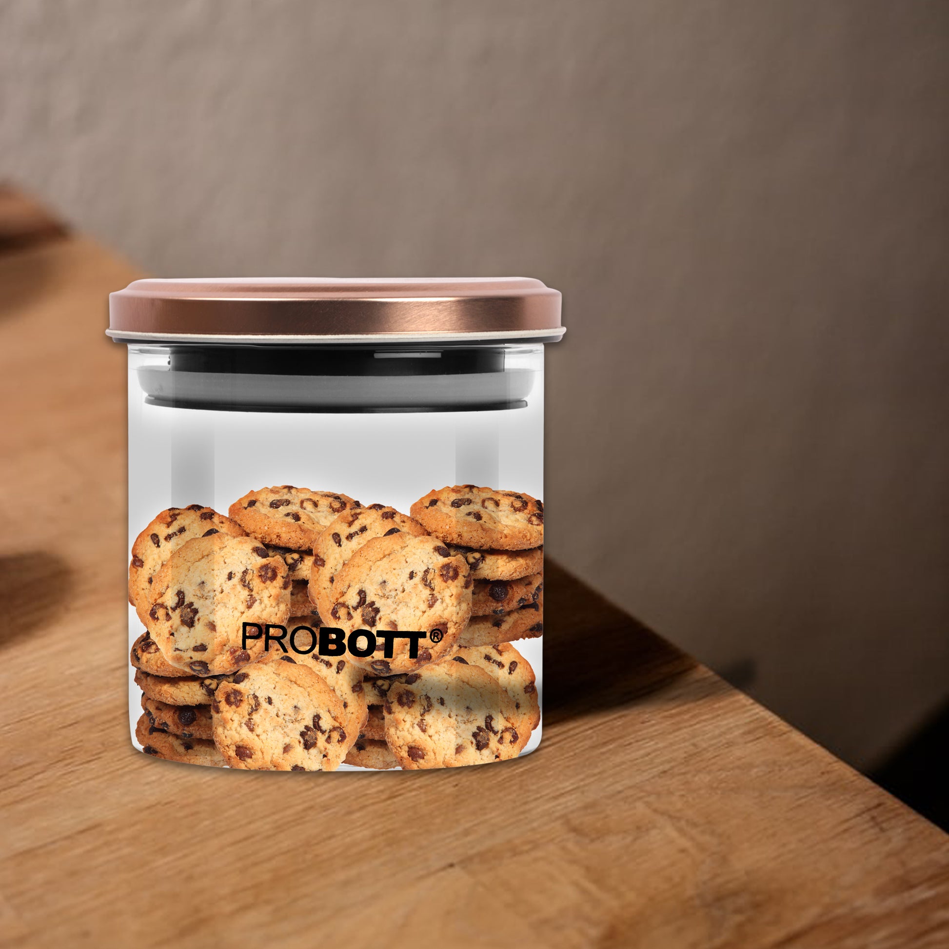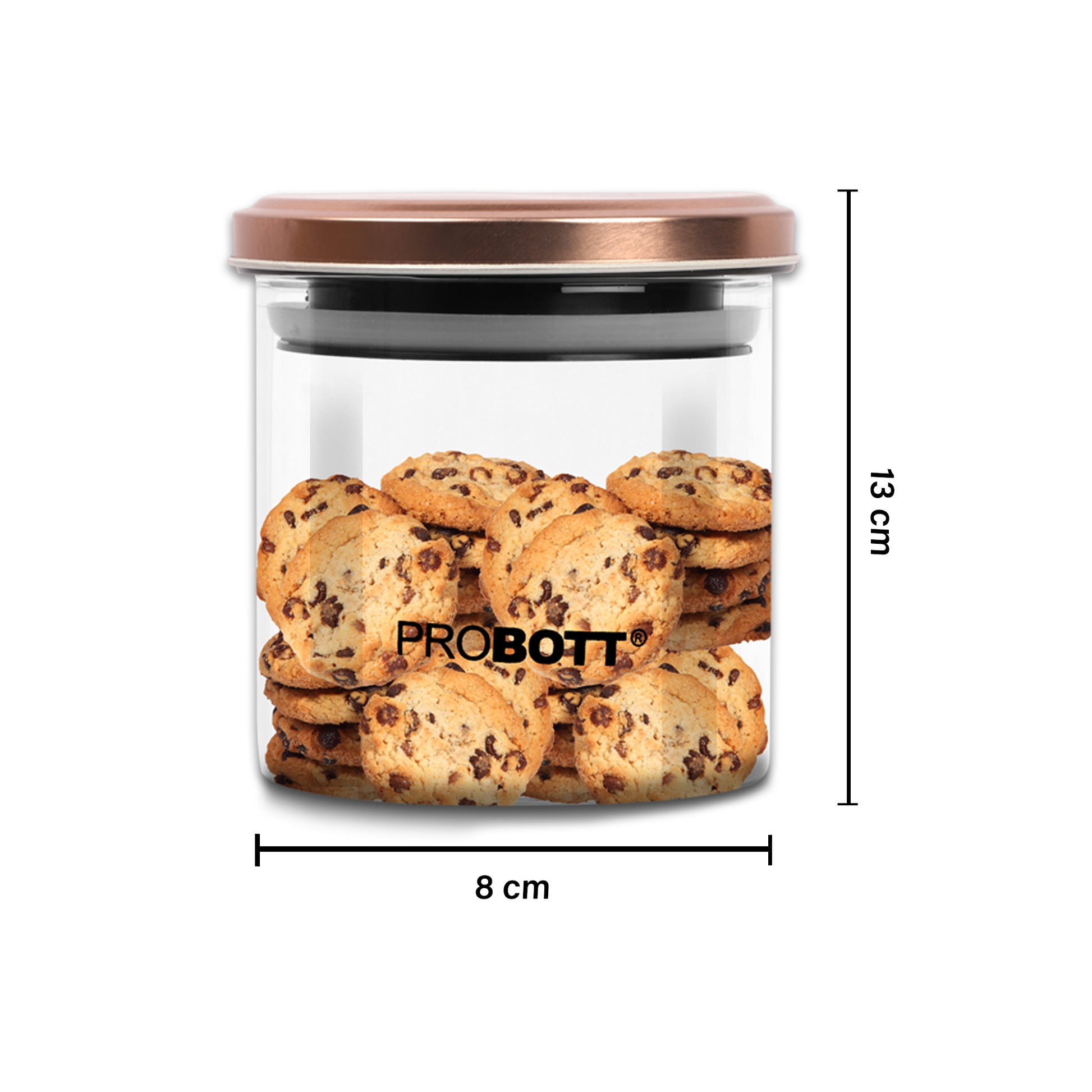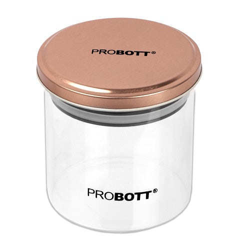 The Probott Vetroware glass jar is perfect for storing spices and dry ingredients. The airtight golden cap keeps everything fresh, and it looks beautiful on my kitchen shelf